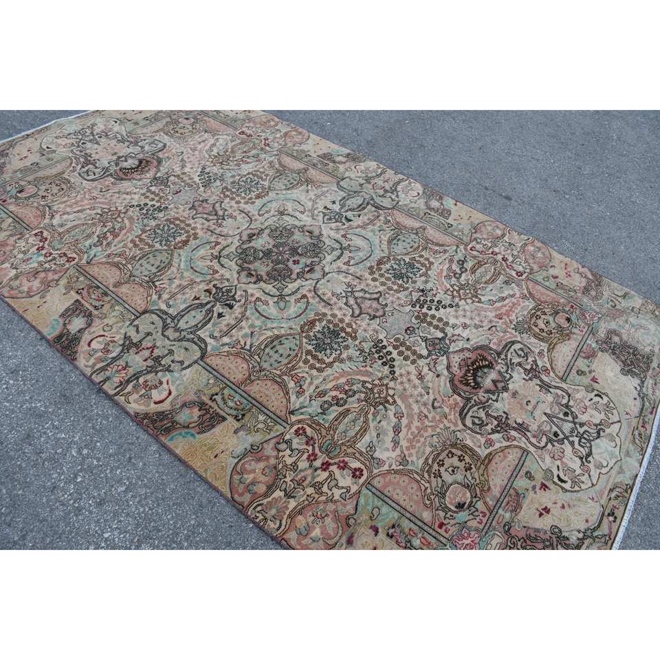 Vintage Turkish Wool Area Rug 5.5 X 9.4ft Beige Pink Patchwork Design Flat Weave Technique for Living Room Decorations Latex