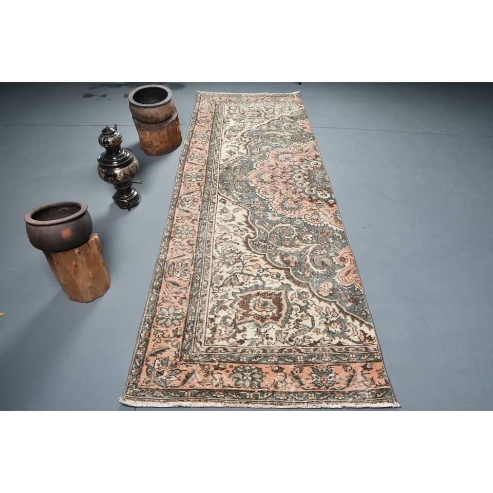 Vintage Turkish Wool Large Area Rug 31 X 98 ft Pink & Blue Patchwork Design for Living Room Decor New Product with Latex Backing