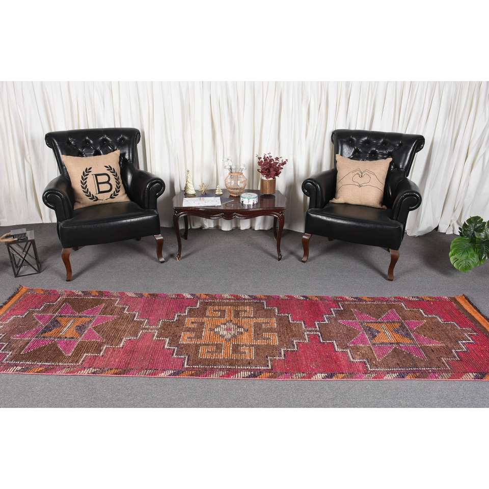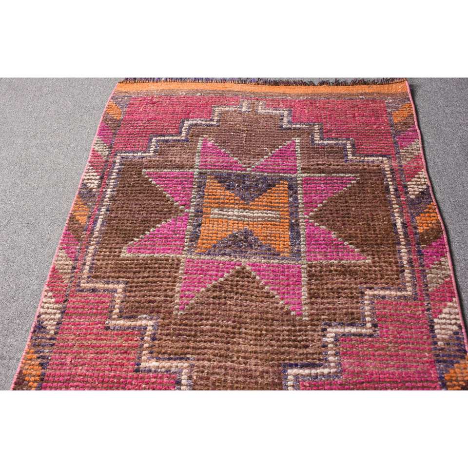 Vintage Turkish Wool Rug 27' X 10' Size Pink Brown Patchwork Design Flat Weave Technique for Living Room Decorations New Product