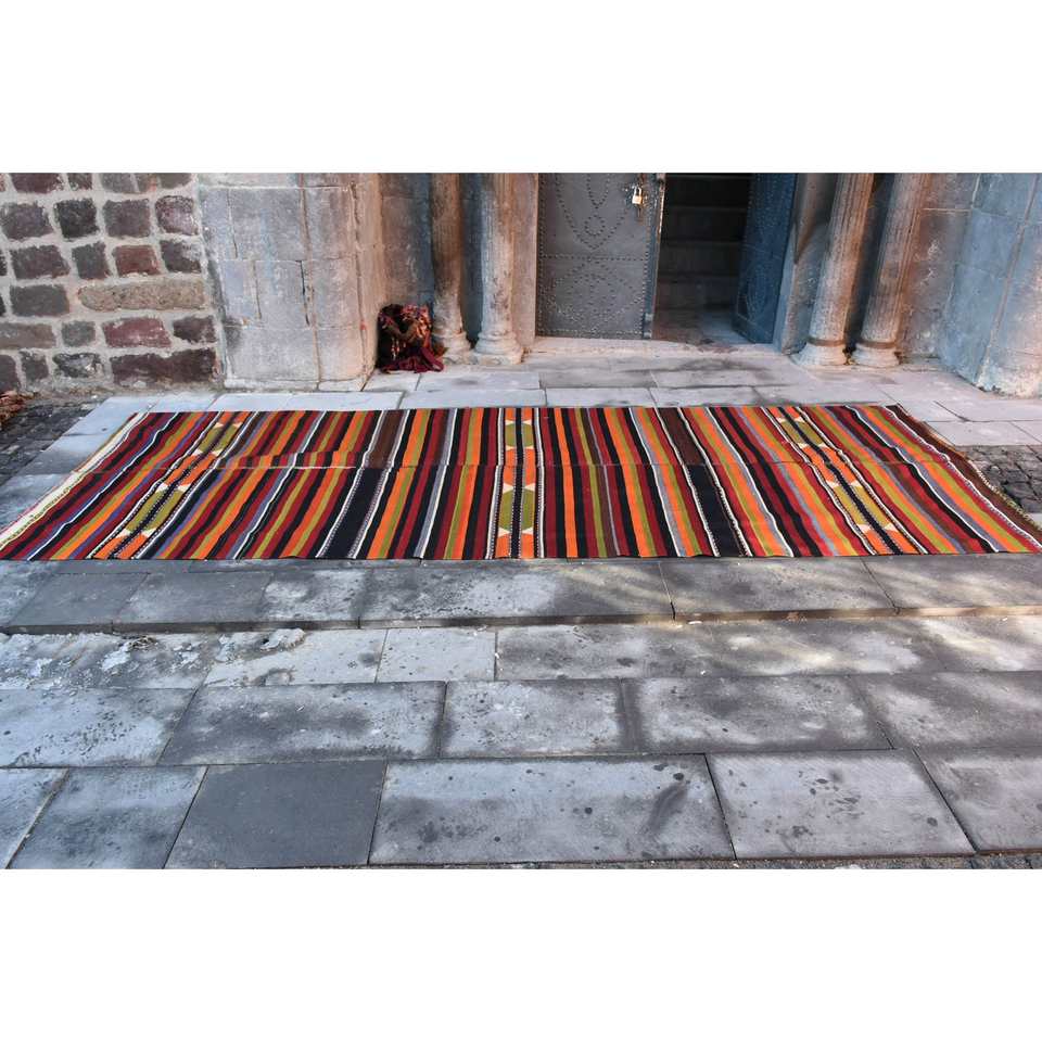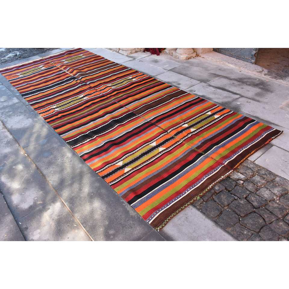 Vintage Turkish Wool Rug 4.8ft X 12.5ft Red & Black Patchwork Design Handmade Rectangle Hallway Model Latex Backing for Bedside