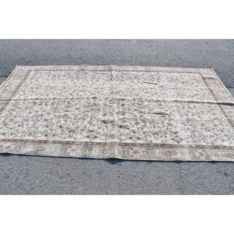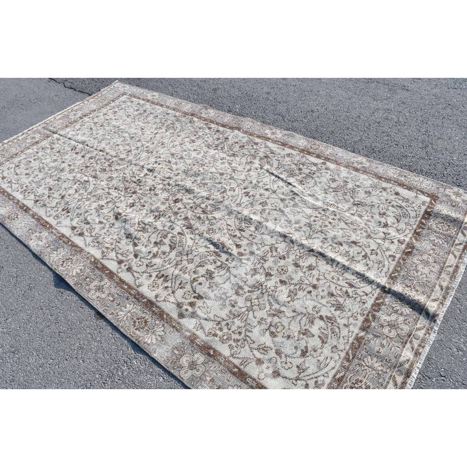 Vintage Turkish Wool Rug 5'1 X 9'4 Rectangular Traditional White Brown Patchwork Design Large Rooms Latex Backed Area Rug Set