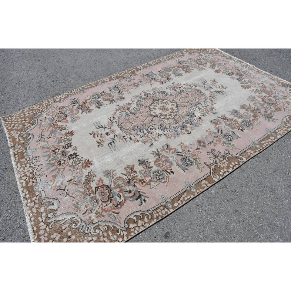 Vintage Turkish Wool Rug 5.5 X 8.5ft Classic Style Beige Brown Patchwork Large Area Floor Covering Latex for Hallway Room Rug