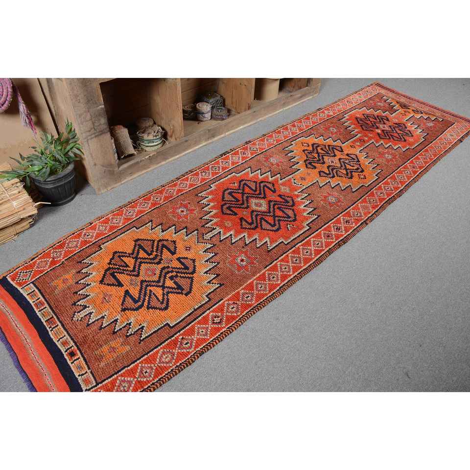 Vintage Turkish Wool Rug Red Orange 29' X 102' Oversized Boho Classic Large Area Patchwork Rectangle Hallway Patterns Latex
