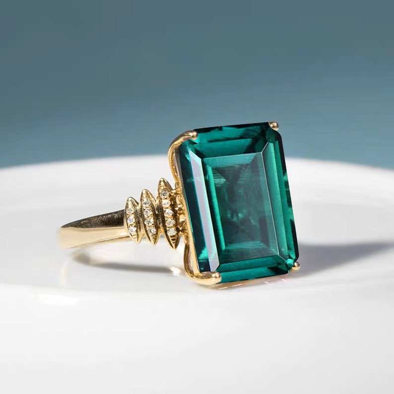 Vintage Unique Emerald Cut Gold Plated Engagement Ring Original Moissanite 925 Silver for Wedding Anniversary Parties