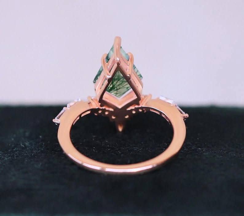 Vintage Unique Moss Agate Moissanite & Green Diamond Wedding Engagement Ring for Party or Anniversary Gift Fashion Rings