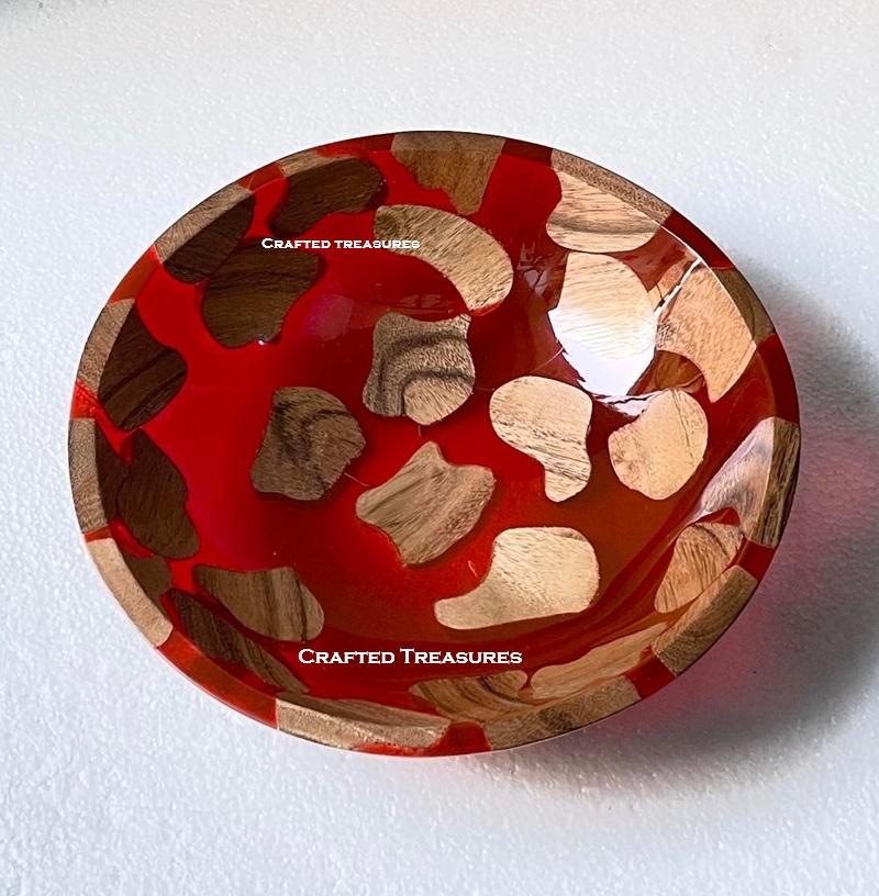 Vintage Varnish Acacia Wood & Transparent Resin Salad Serving Bowl Large Resin Epoxy and Wooden Bowl