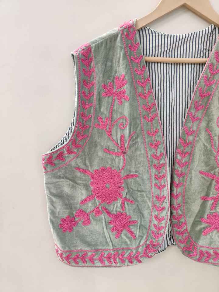 Vintage Velvet Suzani Vest Artisan Hand Embroidery Boho Chic Festival Waistcoat for Women Suzani Jacket Vest coat gift for her