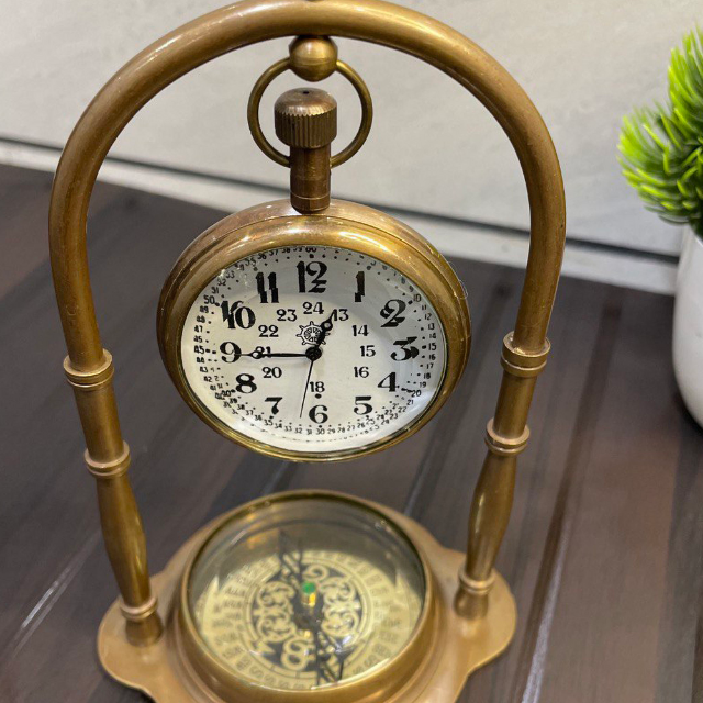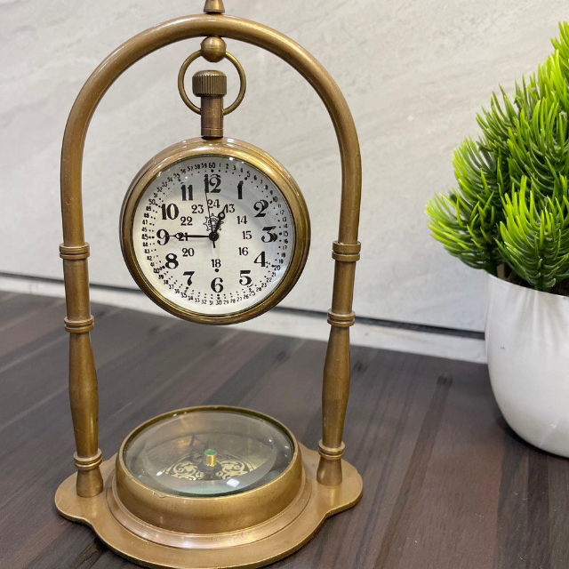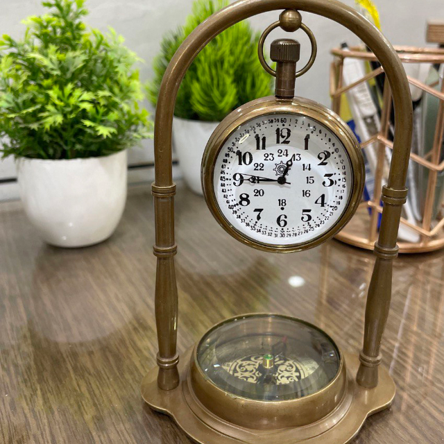 Vintage Victoria Style Nautical Brass Clock with Compass Metal Table Hanging Decorative Home Kitchen and Bedroom