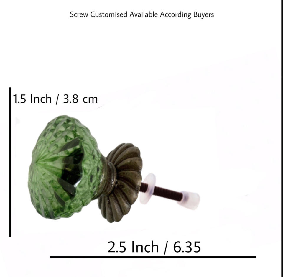 Vintage Victorian Style Glass Forest Green with Antique Bronze Back Plate Knobs Drawer Cabinet Handle Pulls CK 558