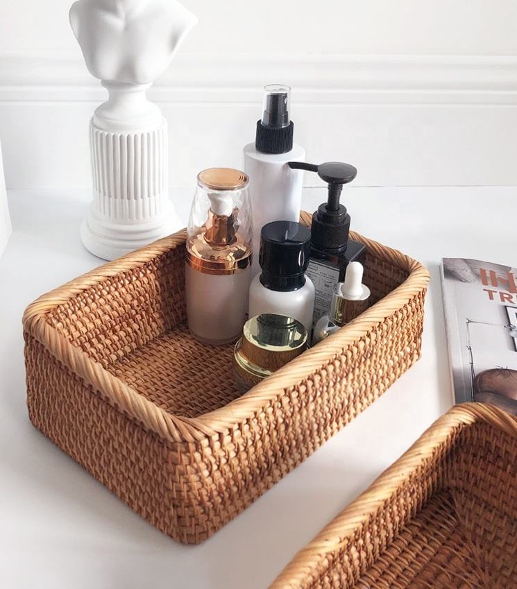 Elegant Vintage Vietnamese Circle-Shaped Rattan Storage Basket Bamboo Fruit Basket for Table Decoration