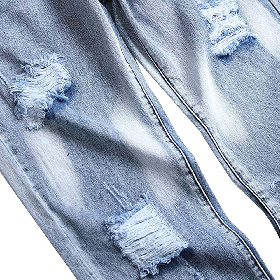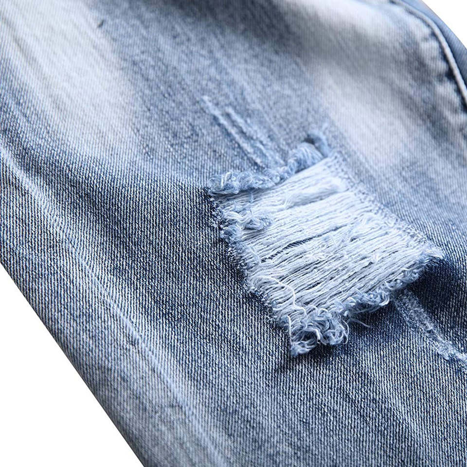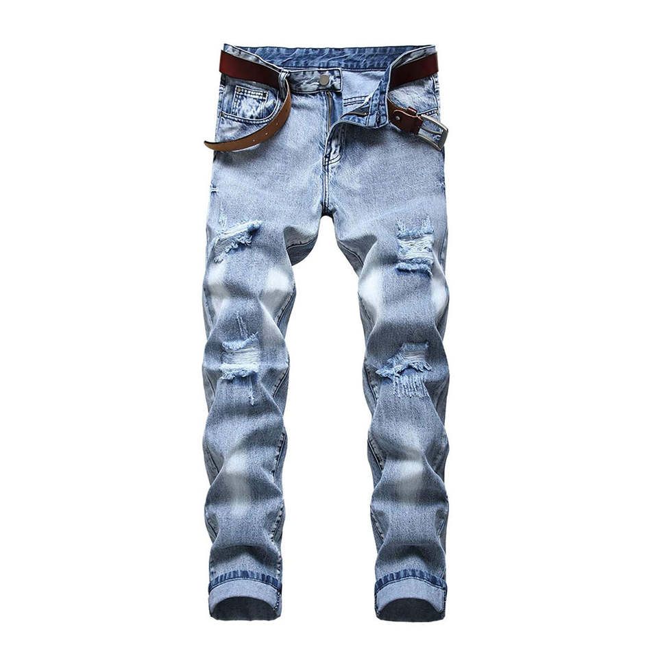 Vintage Wash Distressed Mens Ripped Jeans Long Slim Jeans Straight Denim Pants Men Casual Trousers