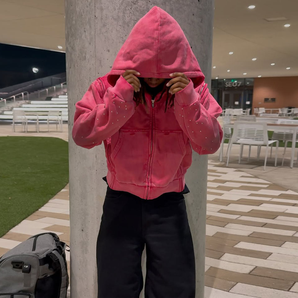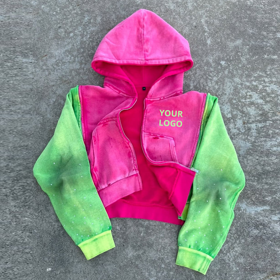 Vintage Washed Heavyweight Cotton Hoodies Custom Triple Zip Design Detachable Replacement Sleeves Hoodie