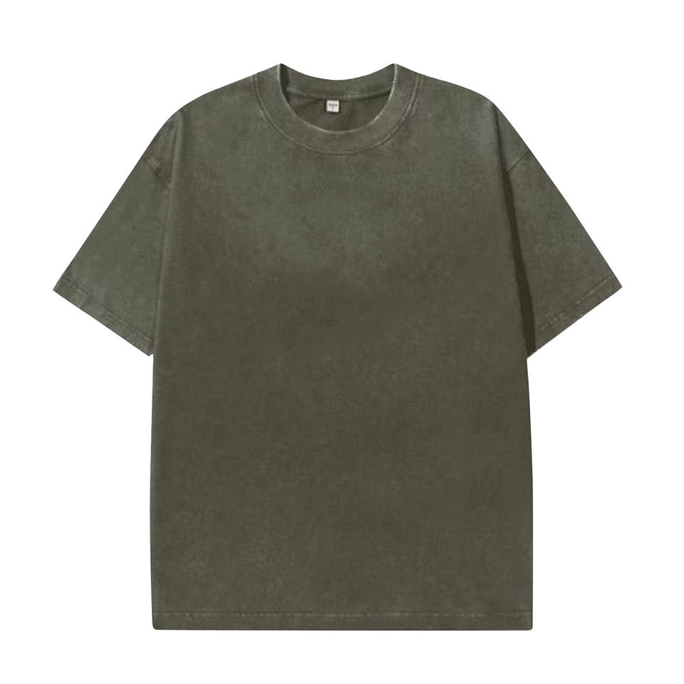 Vintage Washed Men's T-Shirts Blank Oversized Loose Fit Man Clothes 100% Cotton Printed Ringer Rib O-neck T-shirt for men