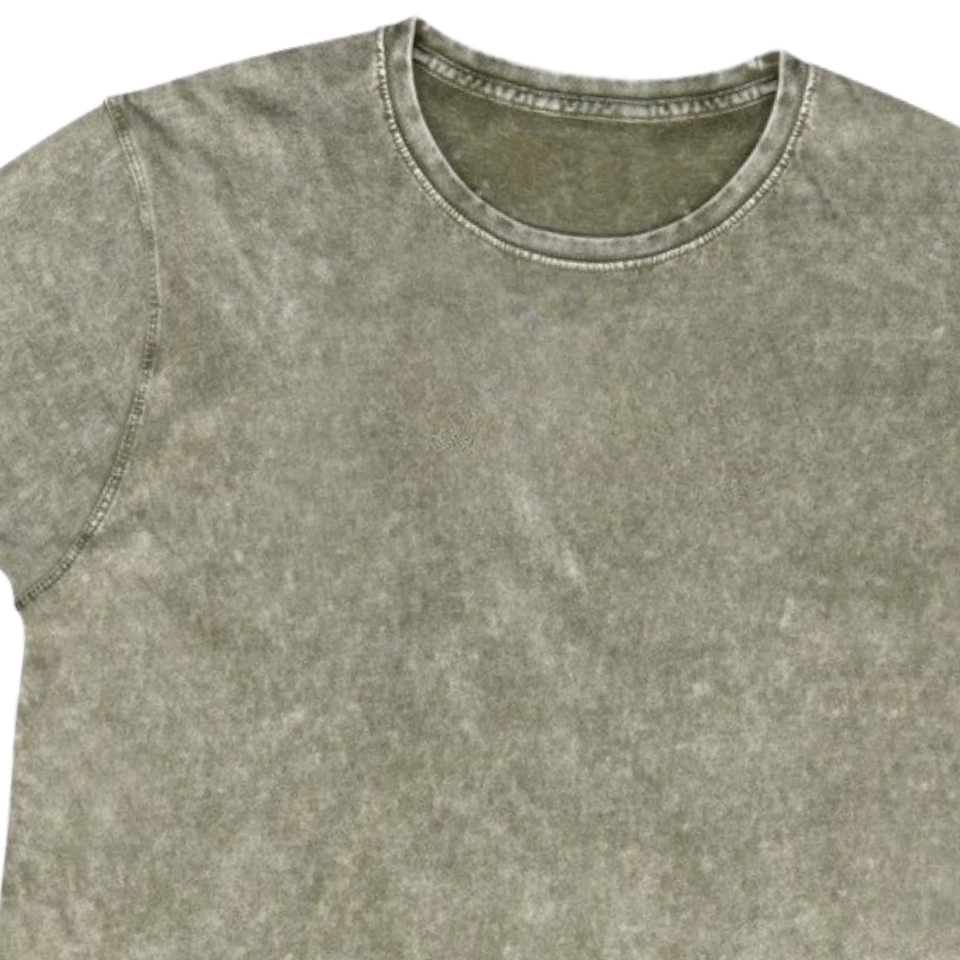 Vintage Washed Olive Green Slim Fit Cotton T Shirt Heavyweight Streetwear Blank Tee Custom Logo Print OEM High Quality Fashion