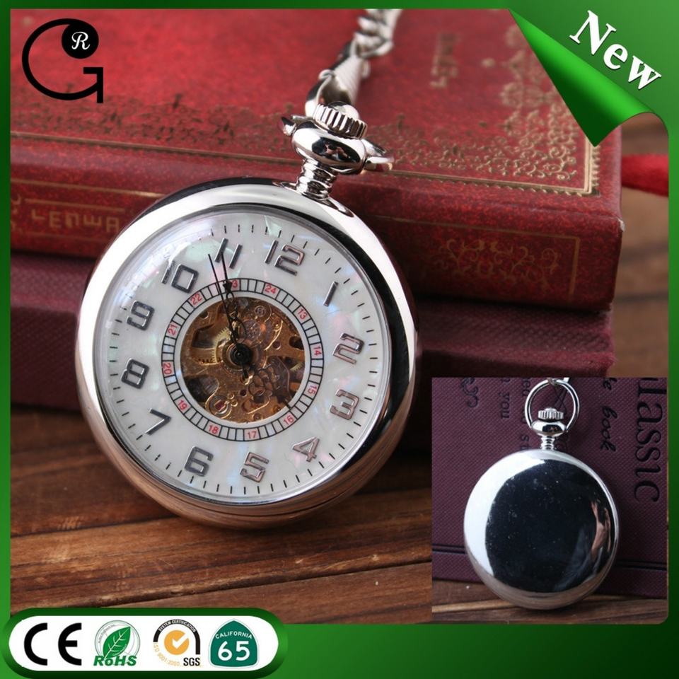 Vintage Watch Silver Metal Wholesale Japan Movt Stainless Steel Back Cheap Pocket Watches Manufacturer