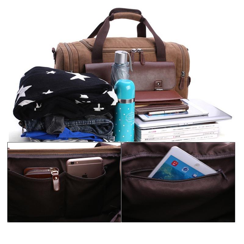 Vintage Waxed Canvas Leather Men Travel Duffel Weekend Bag Waterproof Foldable Tote Bags