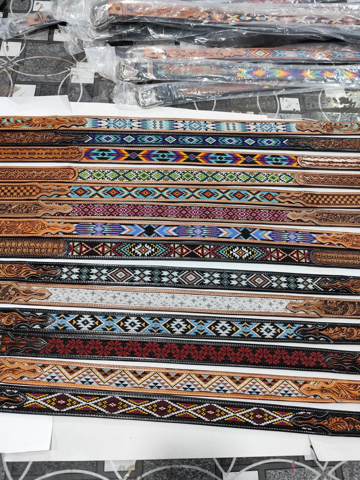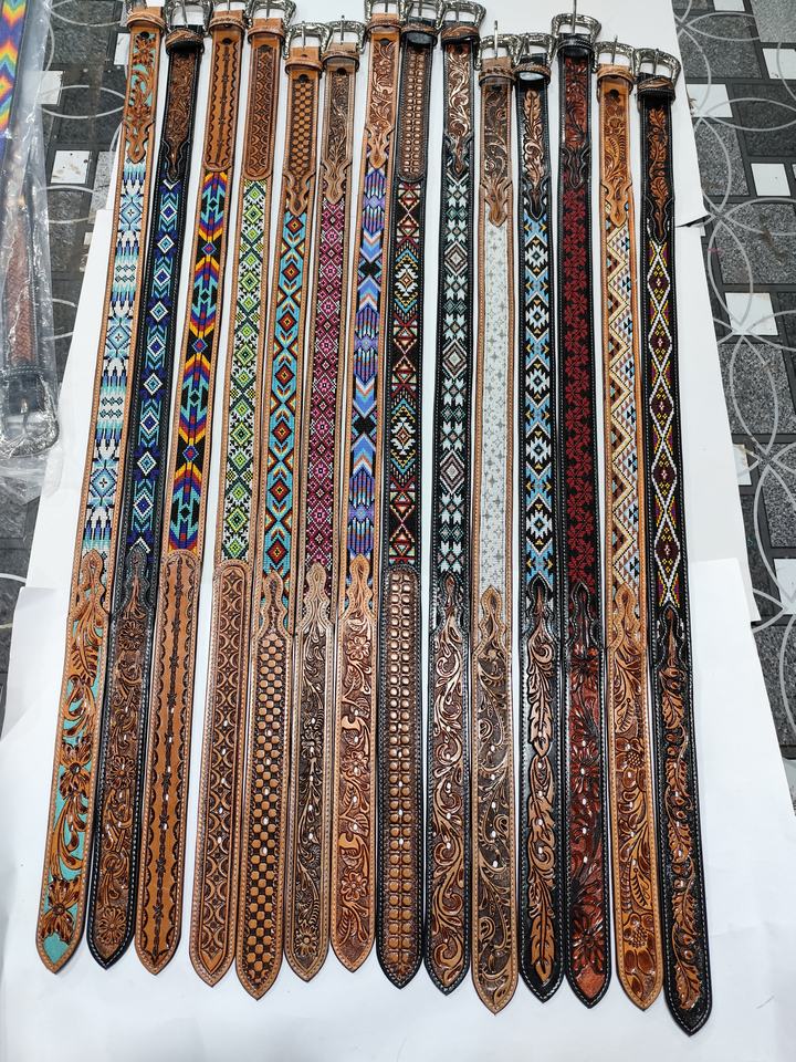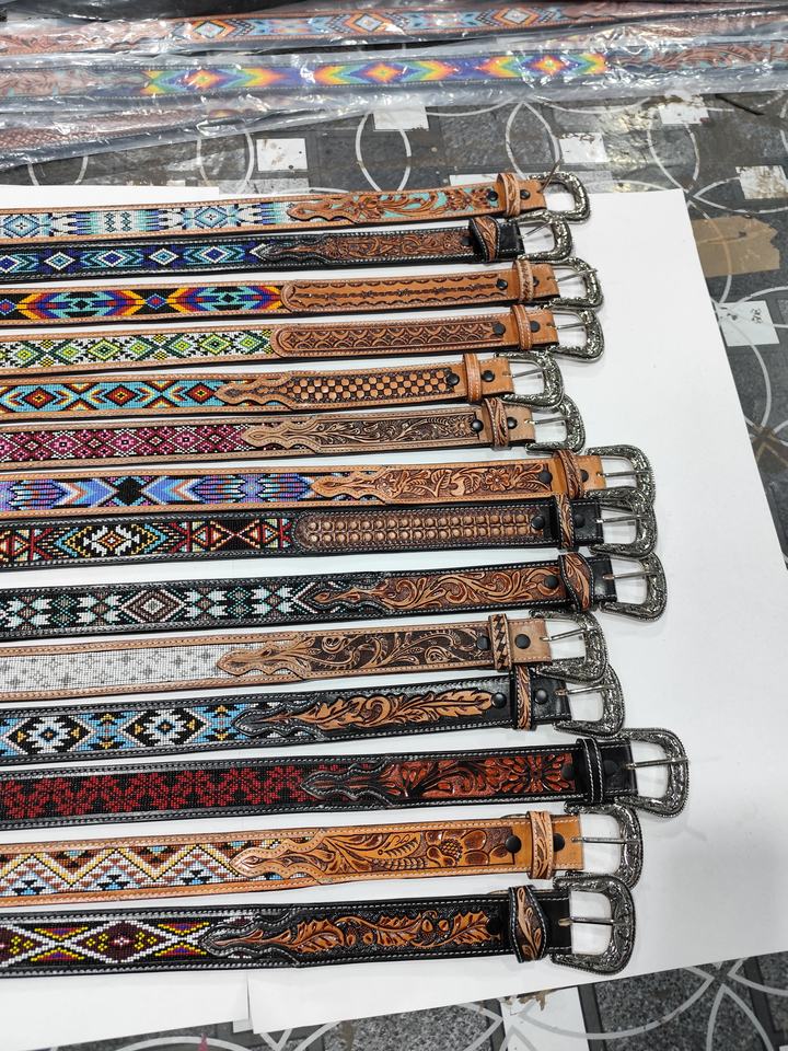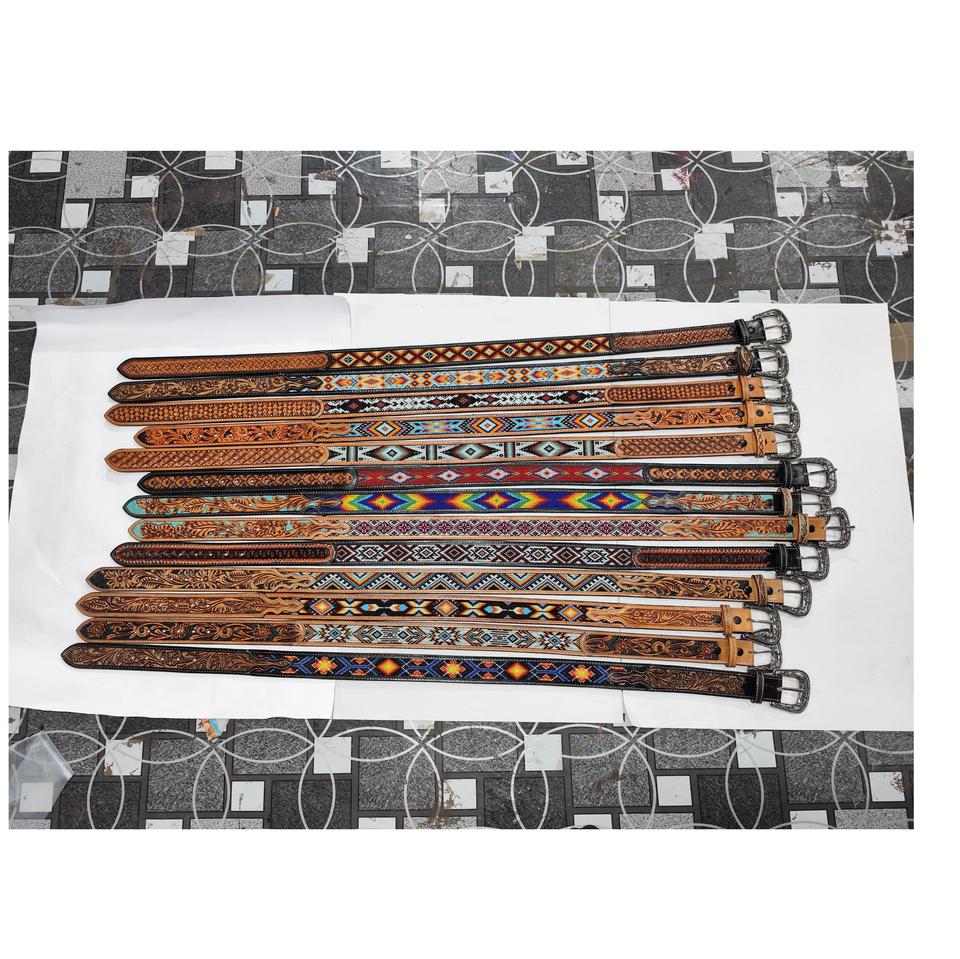 Vintage Western Aztec Beaded Belt with Alloy Buckle Cow Leather Floral Hand Tooling Best Price for Men & Women