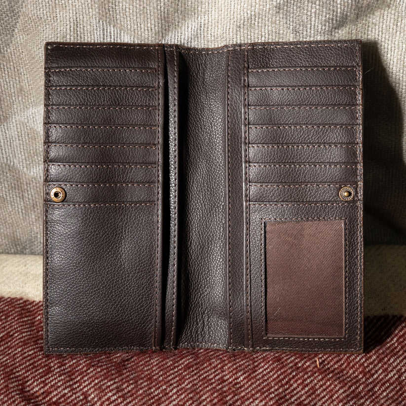 Vintage Western Long Unisex Black Animal Prints Genuine Leather Wallet RFID Snap Closure Elegant