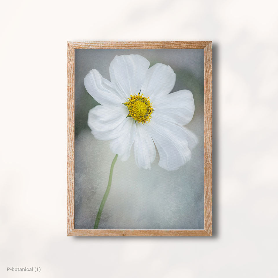 Vintage White Daisy Botanical Wall Art Canvas Print Antique Single Flower Illustration Modern Wood Frame Home Decor