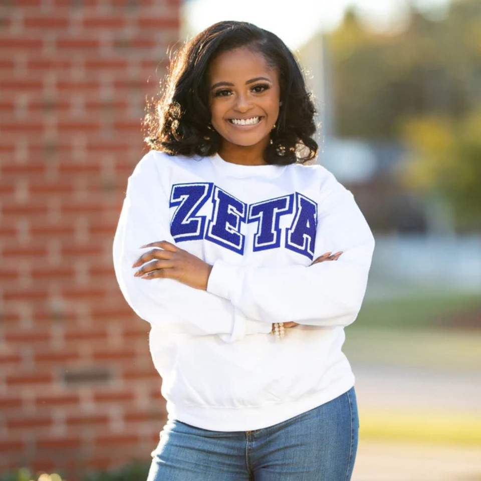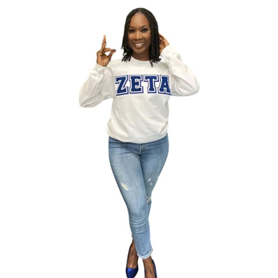 Vintage White Zeta with Soft Cotton and Chenille Letters for Sorority Members Stylish Unisex Greek Apparel Wear
