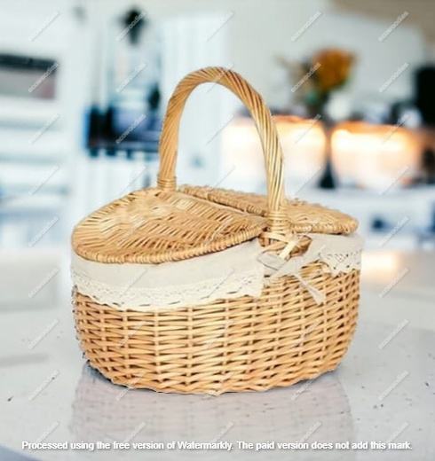 Vintage Wicker Wine Willow Bamboo Wooden Top Picnic Basket Set With Wooden Handle and Lid for 4 Person Rattan Picnic Basket