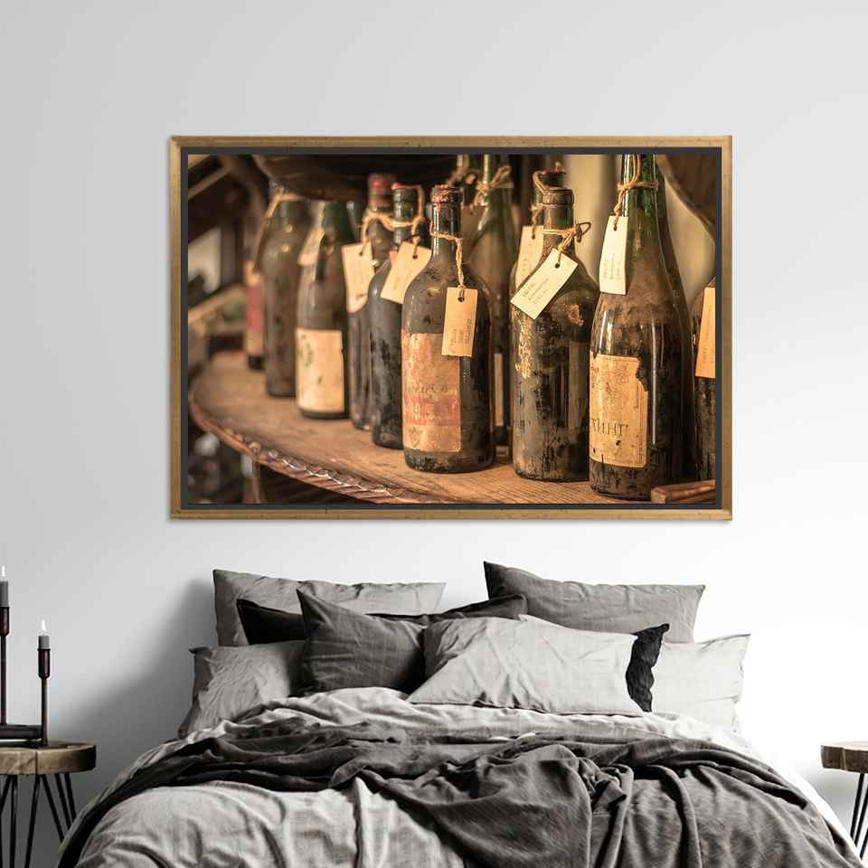 Vintage Wine Bottles Canvas Print: Elegant Trendy Bar Decor,GOLD FRAMED CANVAS