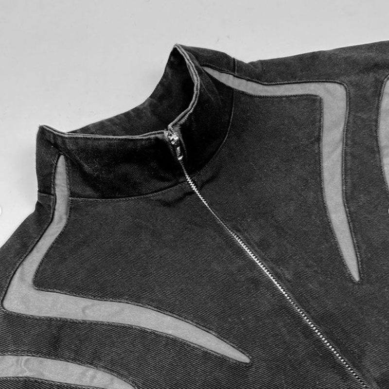Vintage Winter Varsity Jacket for Men Oversized Acid Washed Denim Cotton Zip Baggy Patchwork Pattern Waterproof Windproof