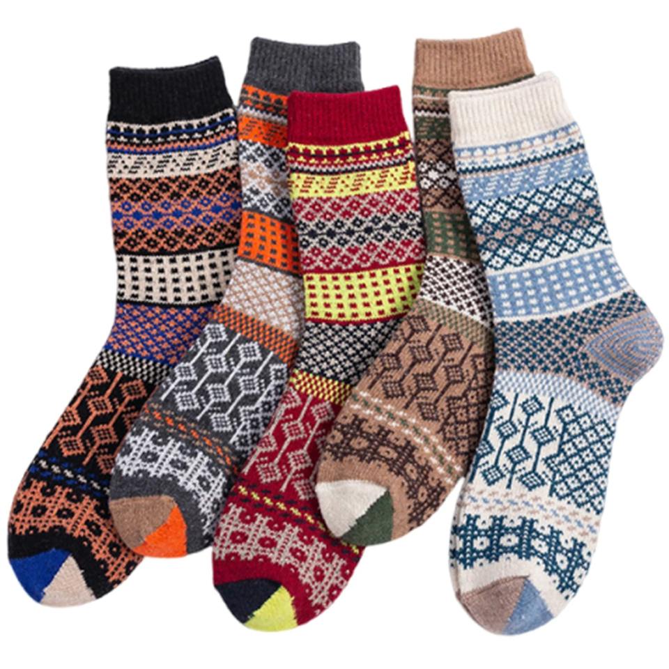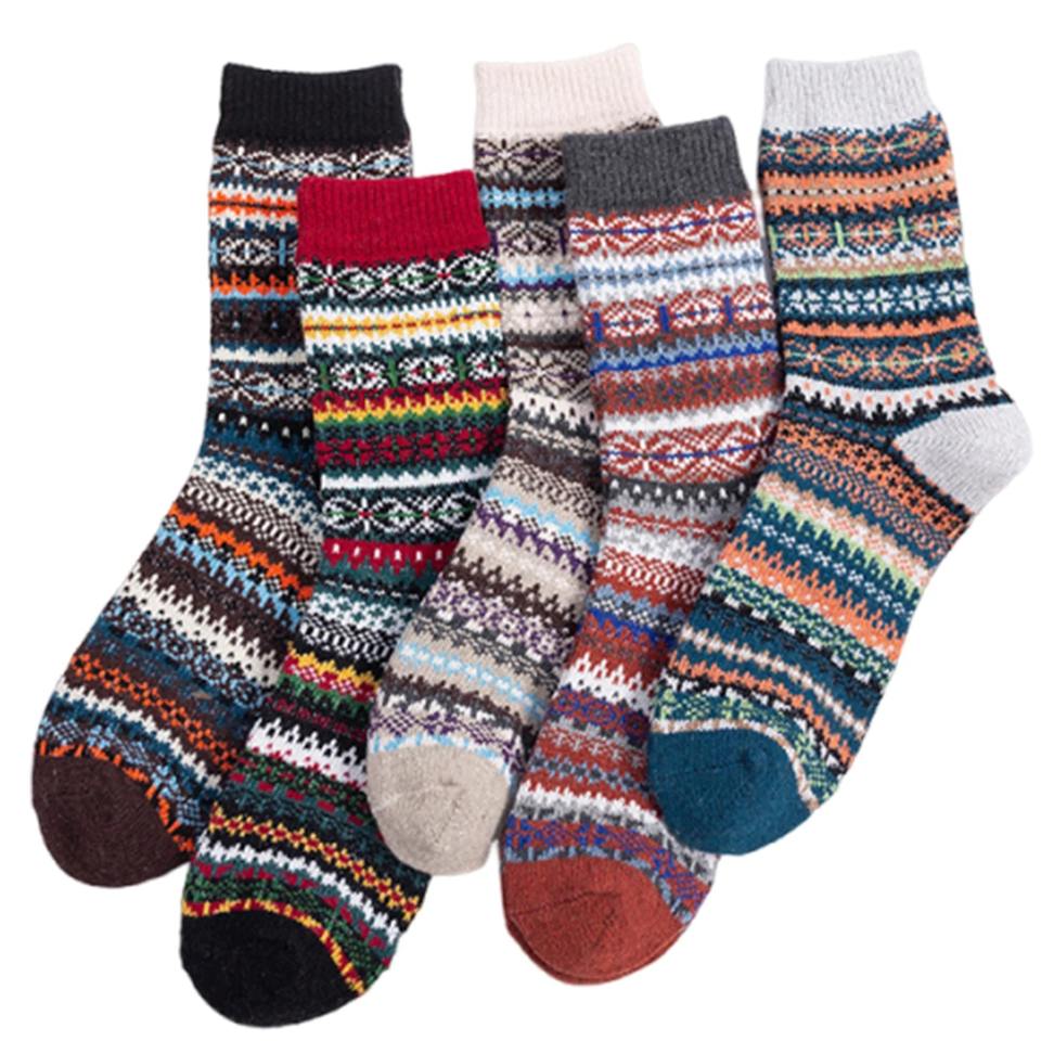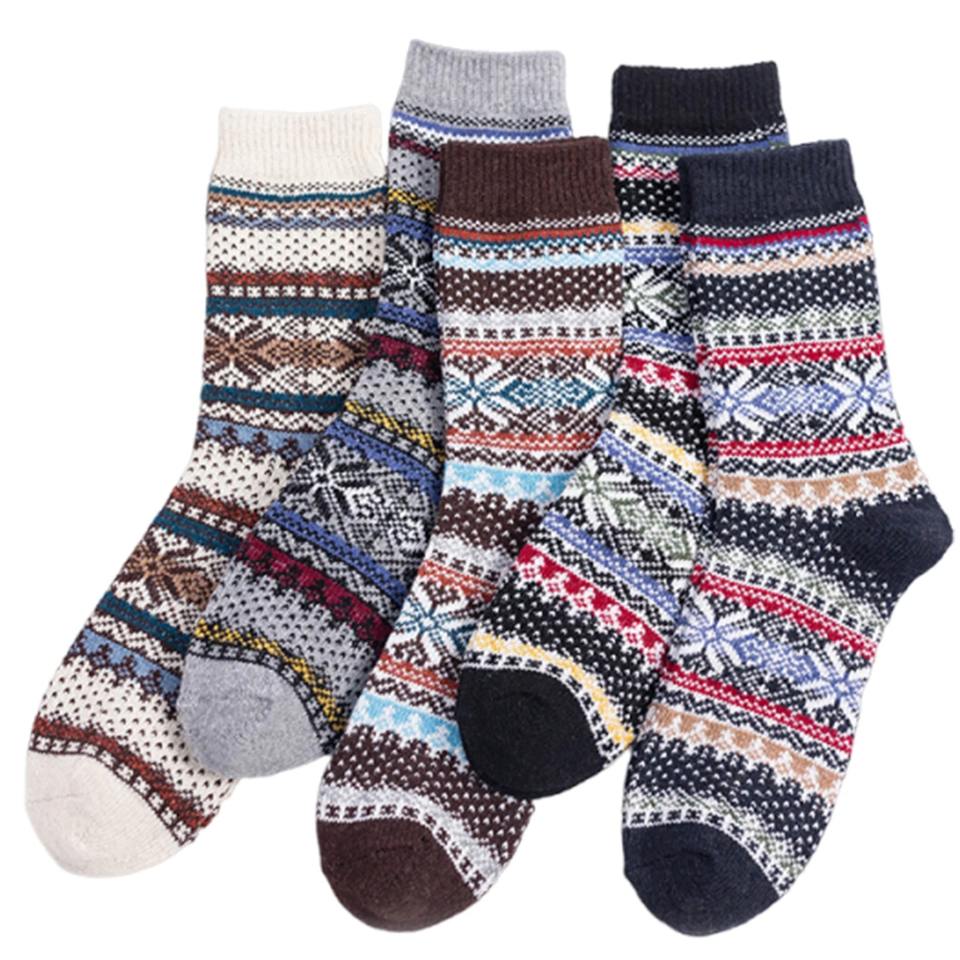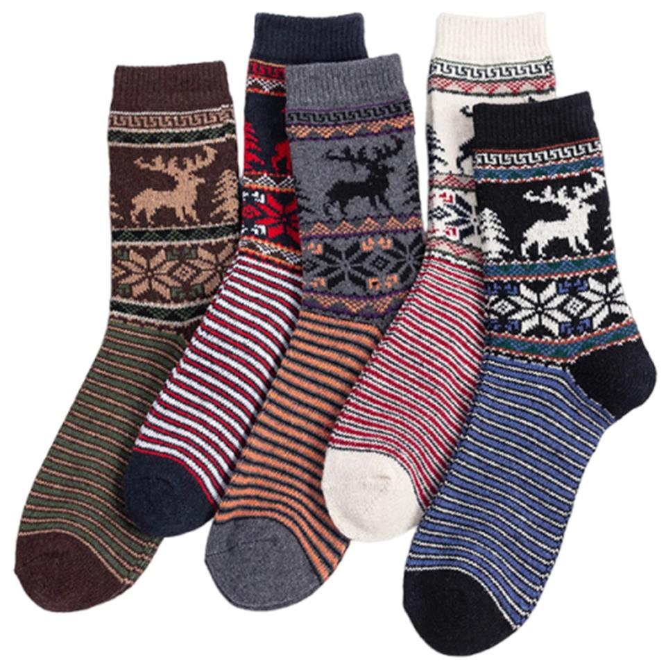 Vintage Winter Warmer Men Striped Wool Blends Socks Cuddly Winter Thick House Socks For Daily Wear