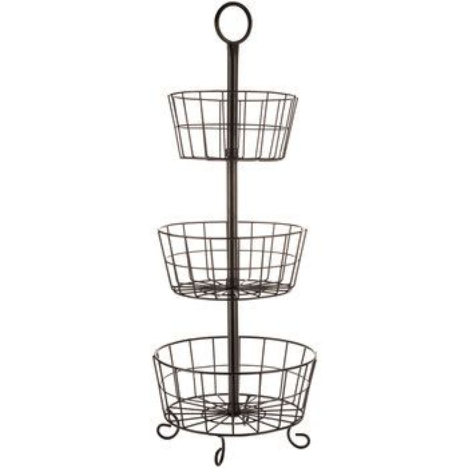 Vintage Wire Iron Basket Black Finished for Kitchenware Living Room Home Decoration Round Shape 3 Tier Storage Basket