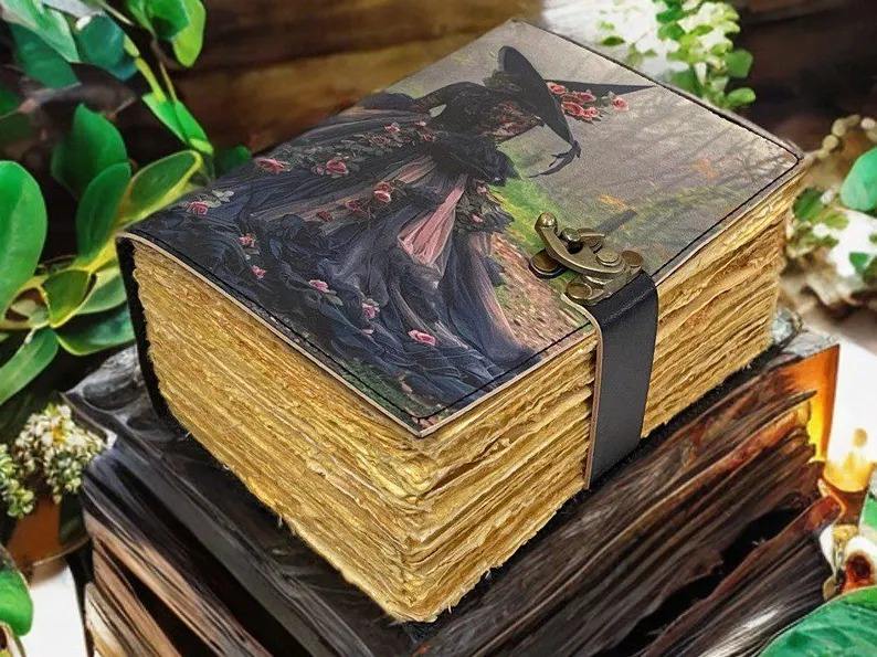 Vintage Witchcraft Diary for Girls Feminine Spell Book Spiral Binding Wiccan Journal Inspired Shadows Leather Grimoire Journal