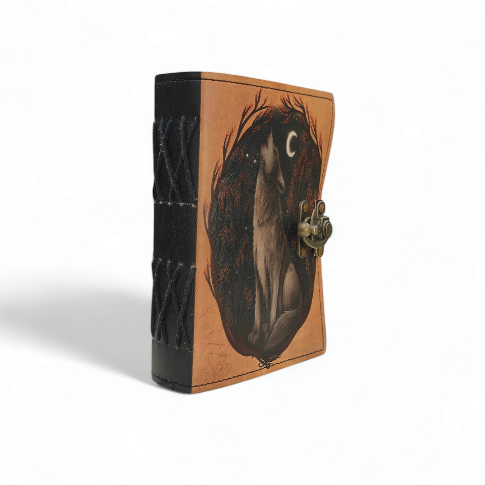 Vintage Wolf Design A5 Leather Notebook Handmade Rustic Journal with Printed Howling Wolf Cover & Acid Free Eco Paper