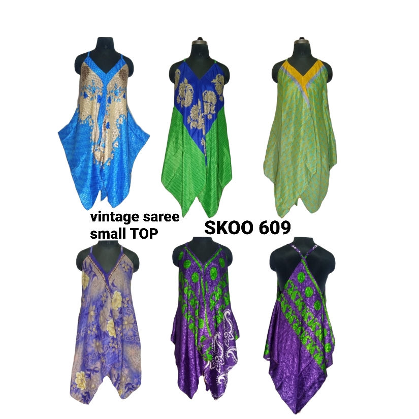 Vintage Women's Boho Tank Top with Short Length Knitted Silk/Rayon Saree Featuring V-neck Hollow Out and Ribbon Decorations