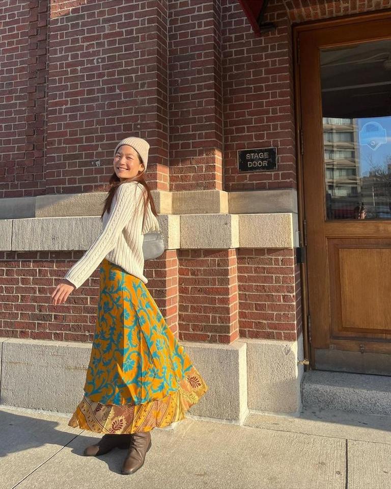 Vintage Women's Double-Layer Silk Sari Skirt Multicolor Asymmetrical Wraparound Tie Waist Ruched Decoration Tight Fit for Casual