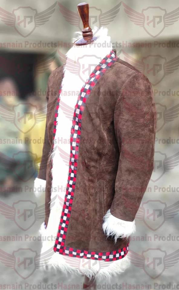 Vintage Women's Tan Suede Leather Faux Fur Brown Topshop Retro Afghan Coat Small Overcoat with Penny Lane Style Trench Outerwear