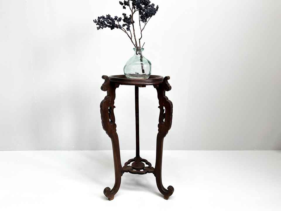 Vintage Wood and Marble Plant Stand Wooden Pedestal Table