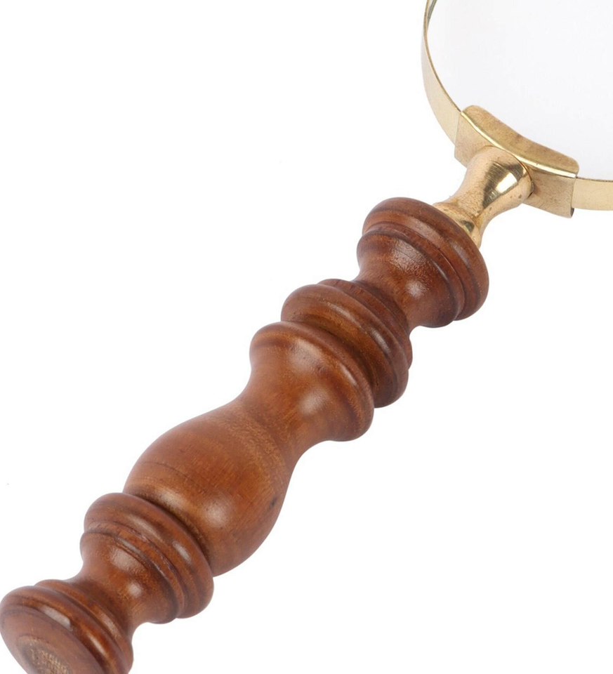 Vintage Wooden Handle Magnifying Glass With Brass Frame For Gifts, Antiques, And Steampunk Accessories