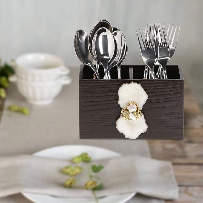Vintage Wooden Handmade Utensil Holder with Colorful Pattern Single Tier Adjustable & Multifunction for Home Kitchen Use