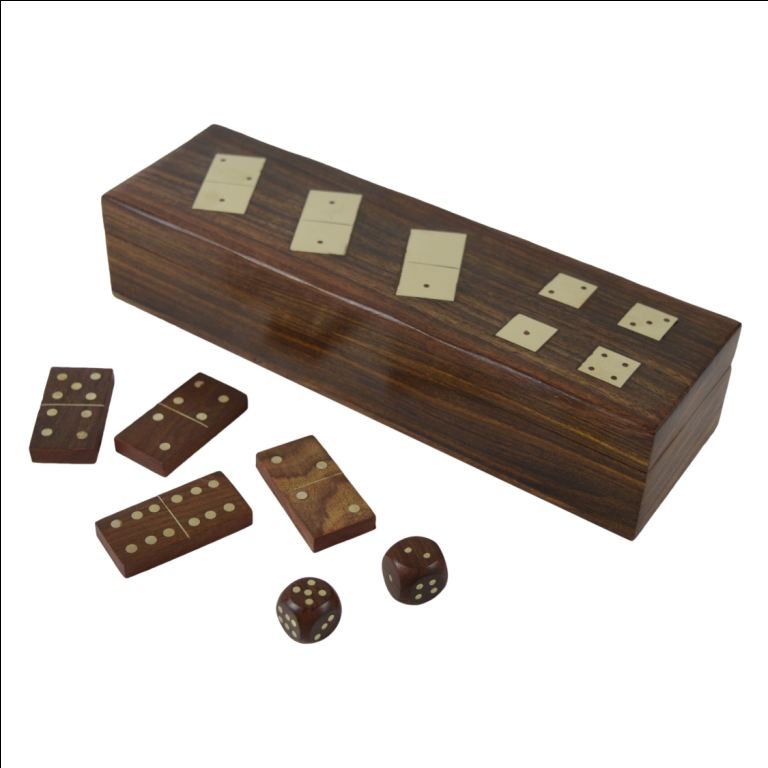 Vintage Wooden Playing Card Box with Dominoes Dice Best Game for Adults for Wedding Parties Classy Decor for Ages 2-4