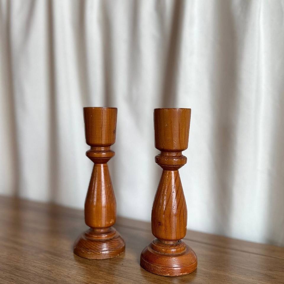 Vintage Wooden Tea Light Holders Elegant Candlestick Pair for Home Decoration for Christmas Festivities