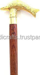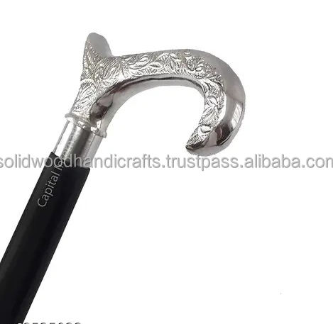 Vintage Wooden Walking Stick With Decorative Brass Handle Designer Black Wood Cane 36"Old Men & Women Walking S