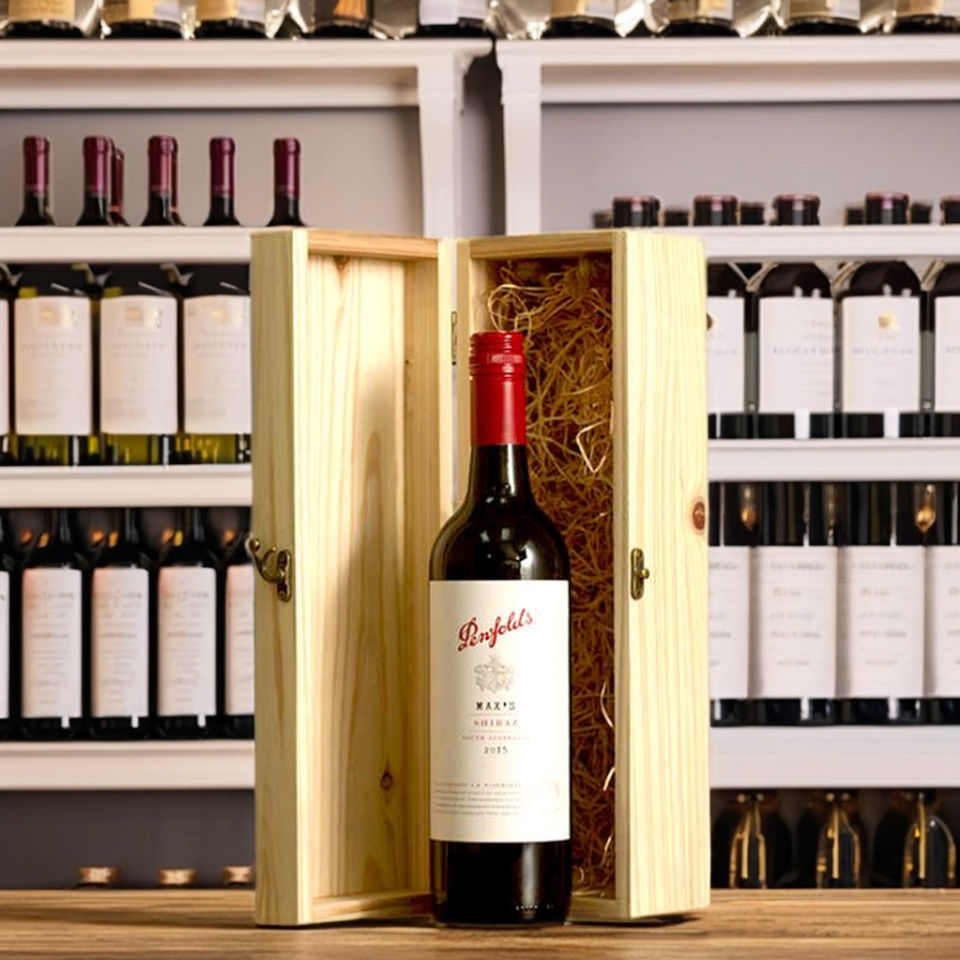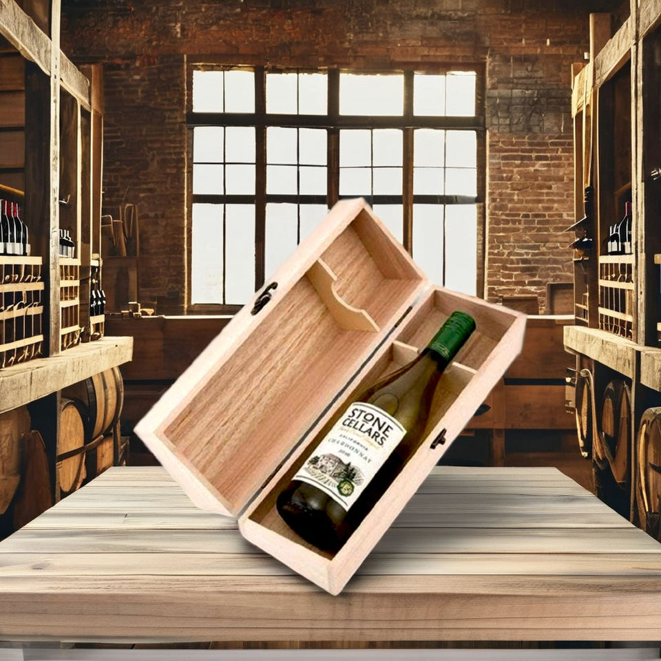 Vintage Wooden Wine Box with Top Handle Hinged Lid Carrier for Wine Bottle Elegant Crafted Gift Box for Wine Storage Gift Giving