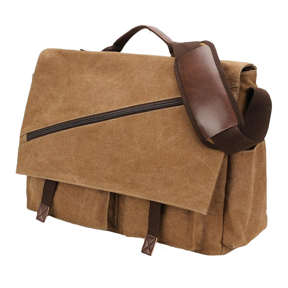 Vintage XL Saffiano Waxed Canvas Genuine Leather Polyester Briefcase Fashionable Zipper Closure Portable Women's Messenger Bag