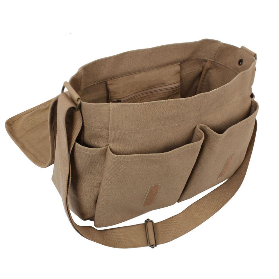 Vintage XL Size Genuine Leather Waxed Canvas Briefcase Zipper Closure Messenger Bag for Men Fashionable Women Portable Style