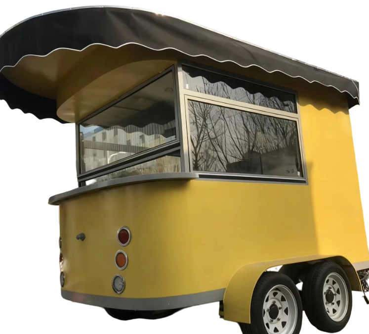Vintage Yellow Mini Mobile Food Trailer Food Truck Snack Food Ice Cream Breakfast Night Market Street Vending Vehicle Stainless