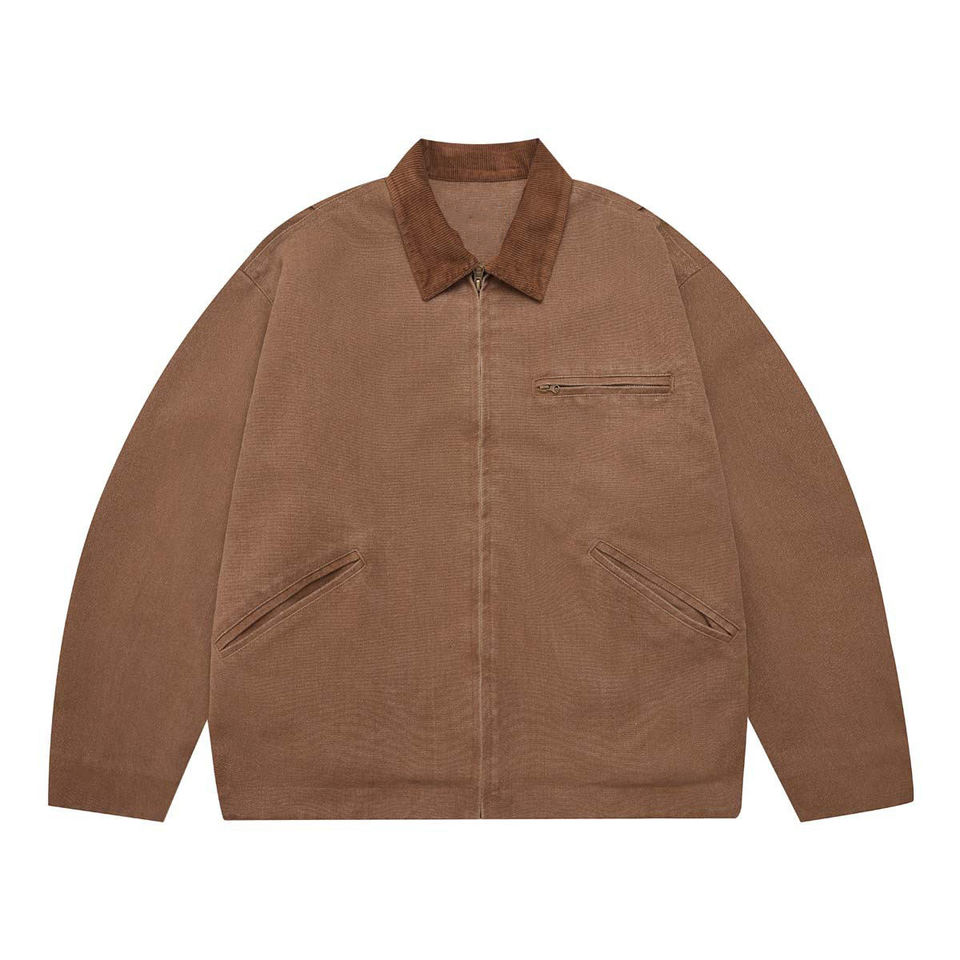 Vintage Zip-up Bomber Jacket for Men Plus Size Faded Washed Duck Canvas Work Wear Turn Collar Casual Puff Winter Eco-Friendly