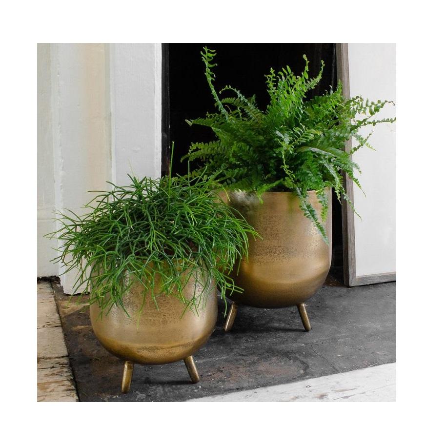 Vintage antique bronze metal planter suitable for rustic themed garden spaces or traditional home interior decor
