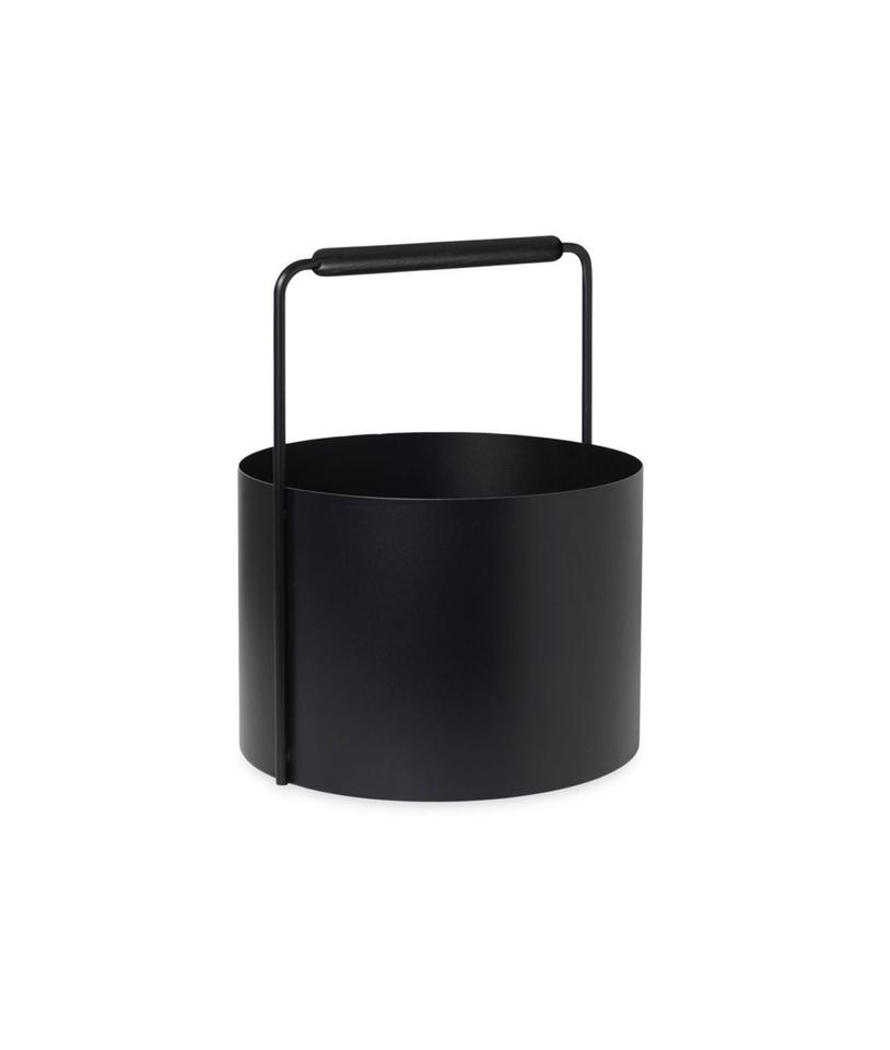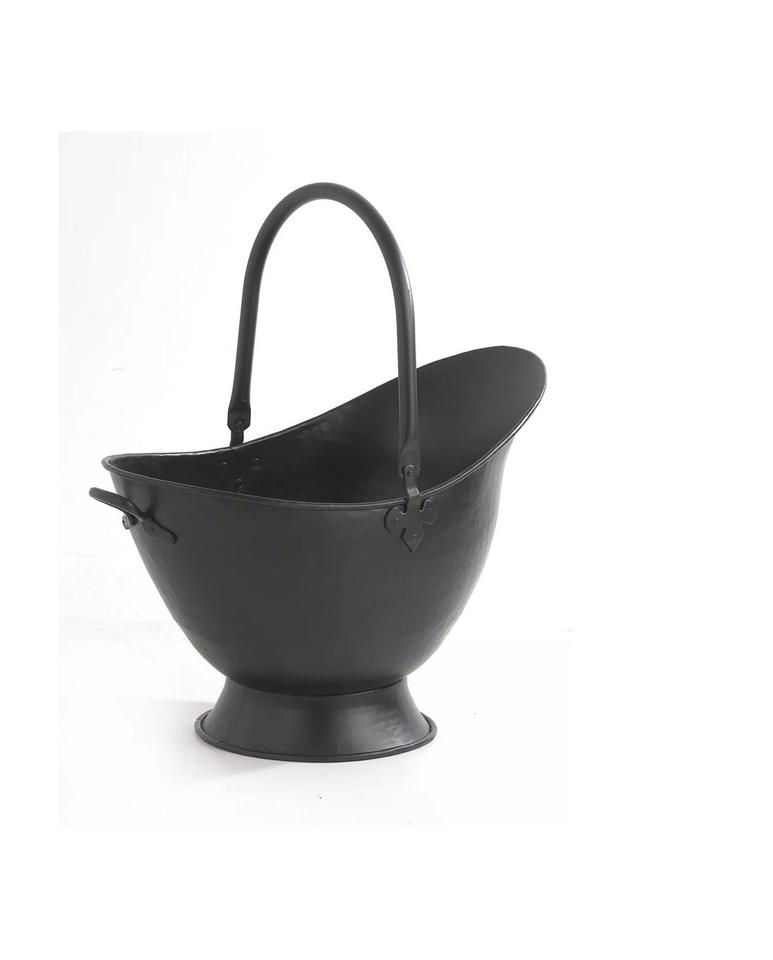 Vintage black wrought iron coal bucket for classic hearth storage with flared edges and antique style metal handle