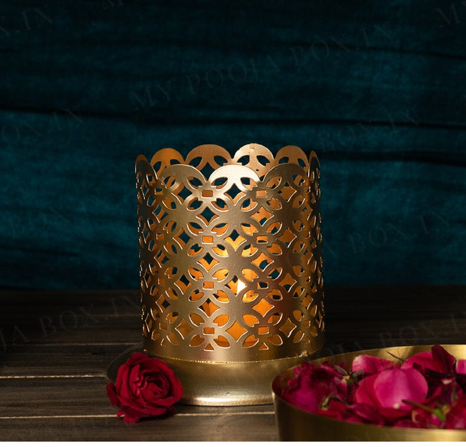 Vintage Bloom Decorative Glass Candle Jar With Metal Golden Lid With Flower Embellishment Ovet It Direct From Indian Wholesaler