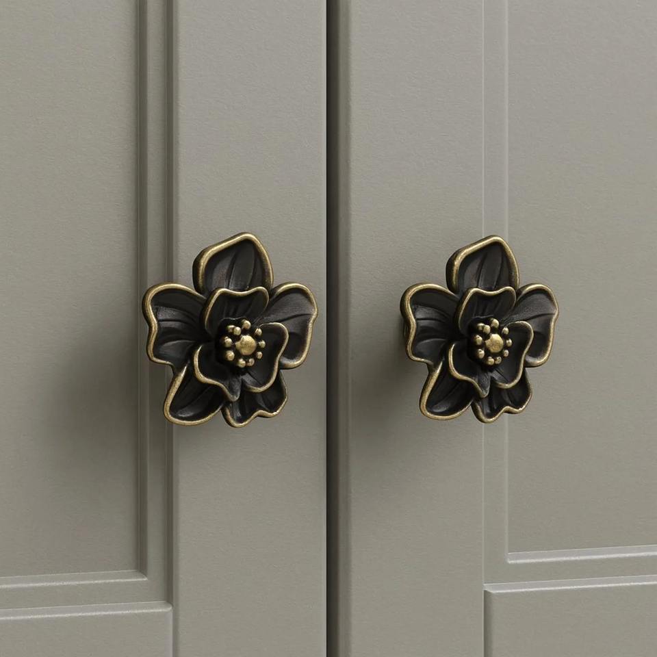 Vintage brass Camellia Drawer Knobs handles, Flower gold brass cabinet pull Wardrobe handle Pulls, laser engraved
