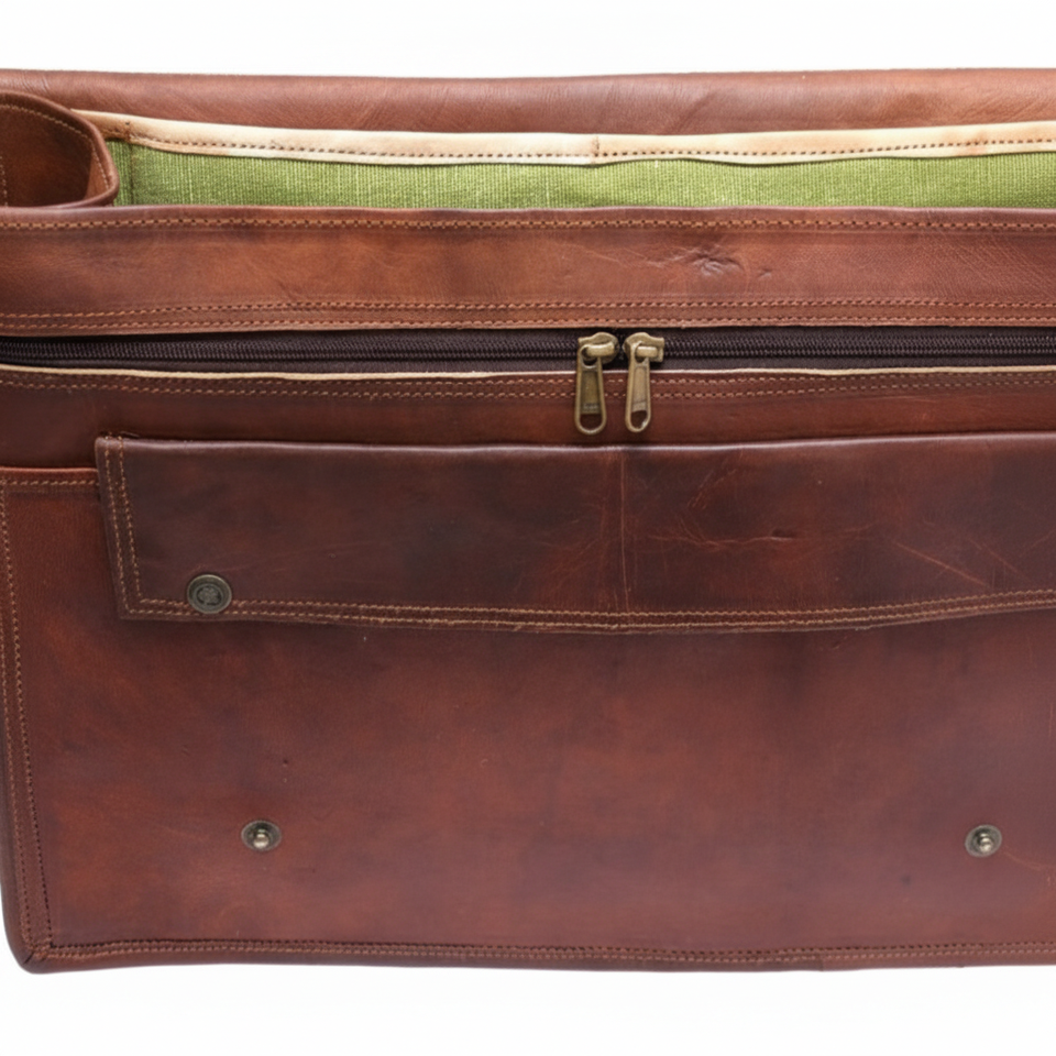 Vintage 17-Inch Laptop Briefcase Real Genuine Leather Canvas Retro Style Men's Messenger Bag